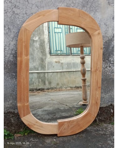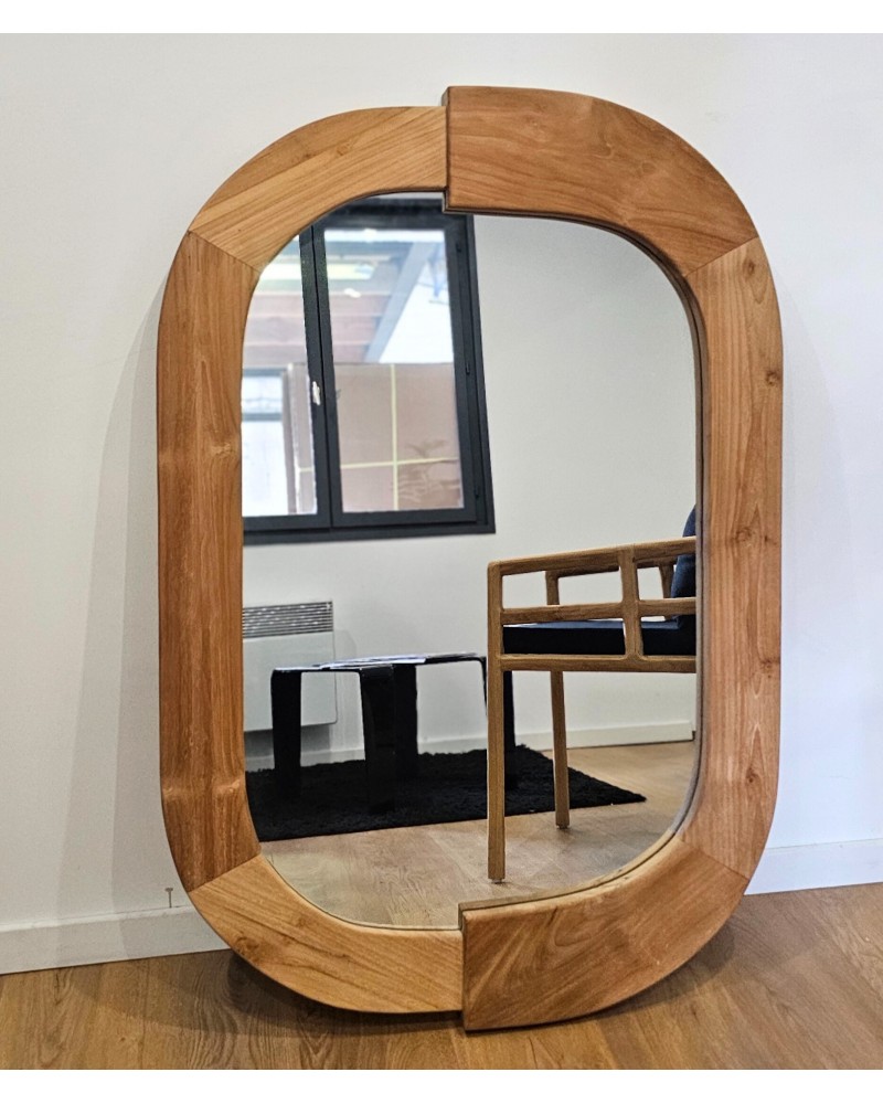 Un miroir robuste au cadre épais en teck massif, alliant solidité et élégance. Parfait pour apporter profondeur et caractère à vos murs.