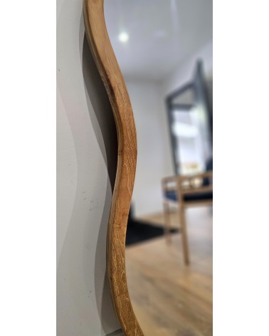 Le miroir Nya se distingue par sa forme difforme unique, alliant originalité et élégance naturelle. Son cadre en teck massif (2 x 4 cm), travaillé à la main, révèle le caractère vivant du bois et apporte à votre intérieur une pièce décorative à la fois audacieuse et raffinée. Sa silhouette irrégulière en fait un véritable objet artistique, parfait pour un salon, une entrée ou une chambre.