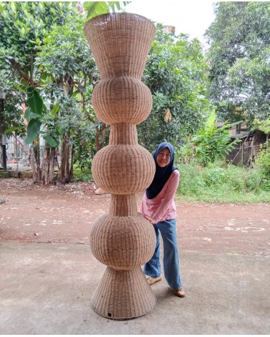 Ses courbes sculpturales en rotin naturel dessinent la lumière comme une œuvre d’art. À la tombée du jour, elle diffuse une lueur chaude et enveloppante, transformant votre intérieur en refuge apaisant.