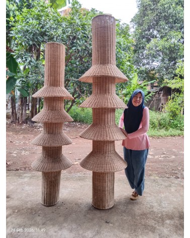 Son design unique, composé de niveaux délicatement évasés, crée un jeu de volumes spectaculaire tout en conservant la douceur naturelle du rotin tressé à la main. Véritable pièce signature, NUA structure l’espace et apporte du caractère à votre intérieur.